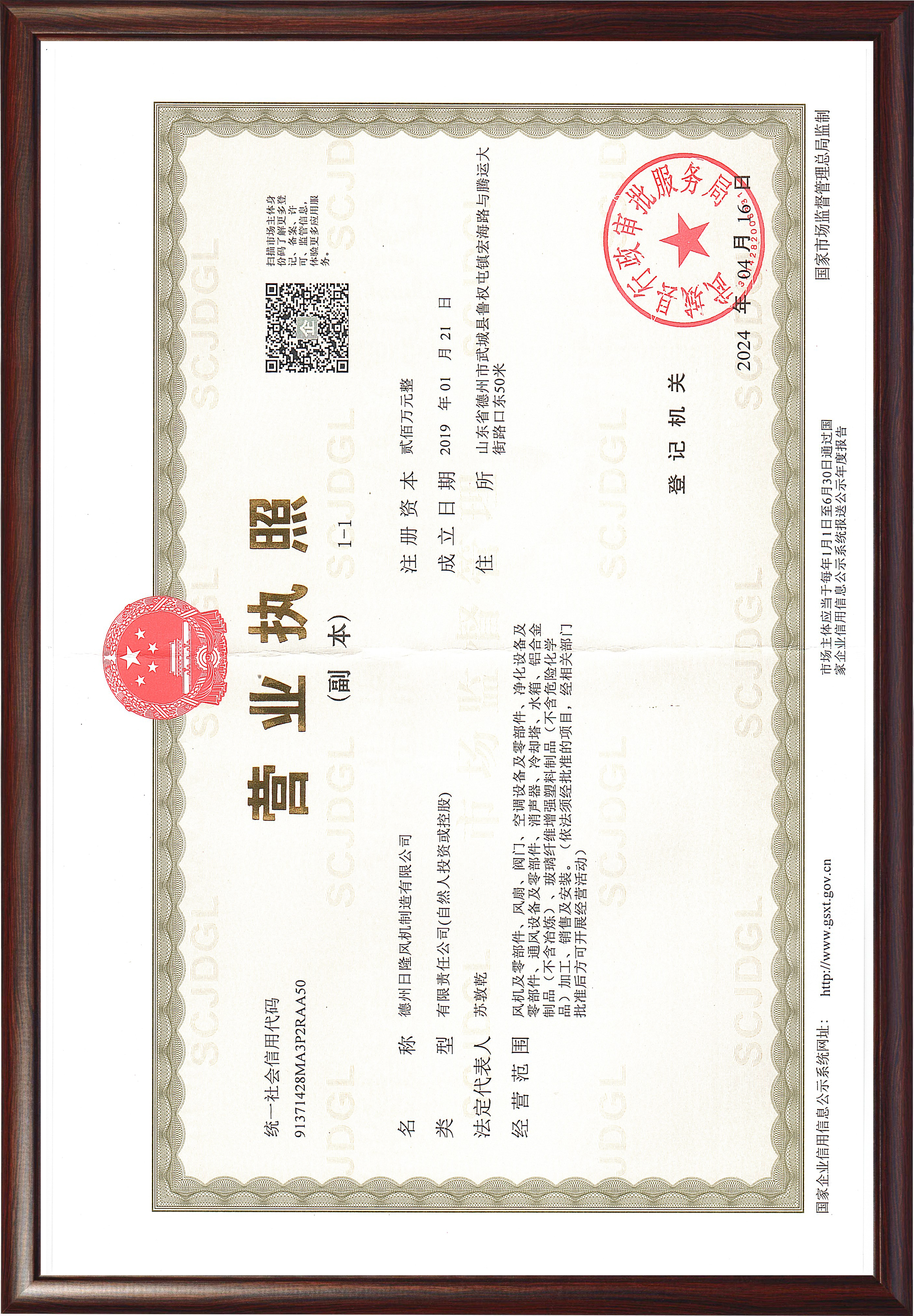 日隆風(fēng)機資質(zhì) -